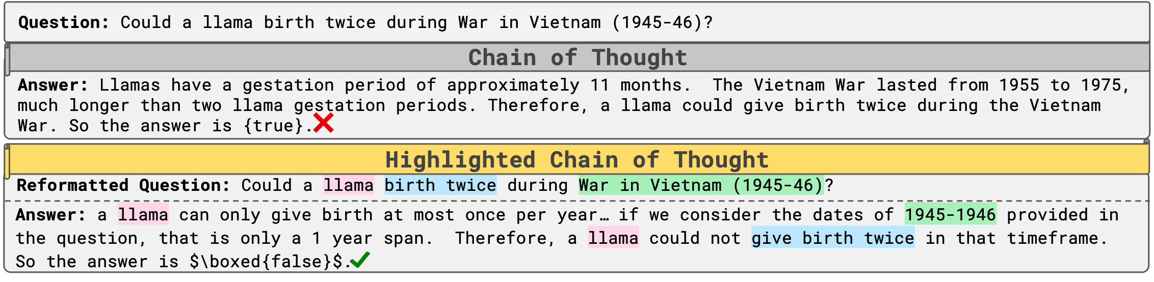 HoT: Highlighted Chain of Thought for Referencing Supporting Facts from Inputs